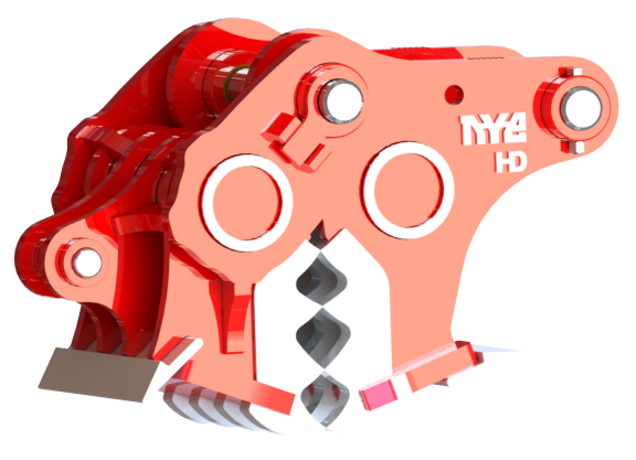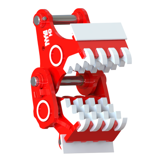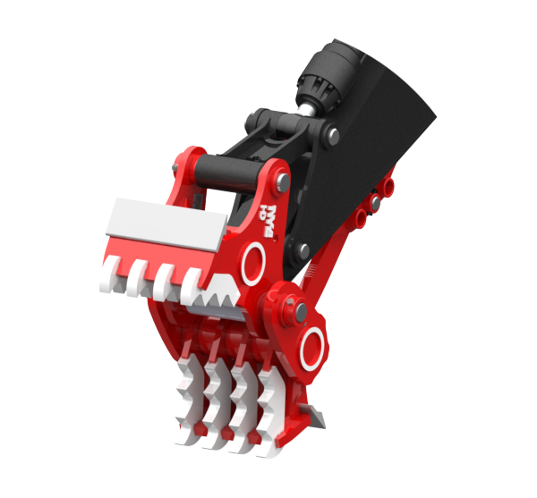 Direct pin-on Heavy-duty pulverizer with 4 over 4 jaws.