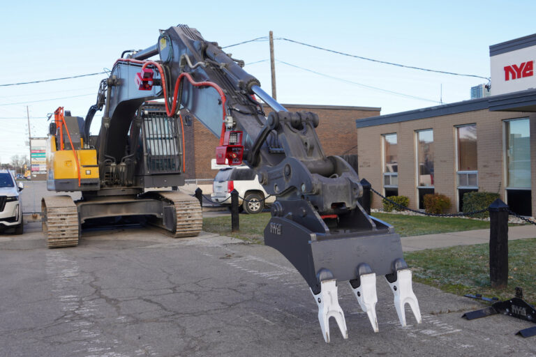 DSS nozzle systems mount onto the stick and boom of the machine with heavy duty welded pedestals. The nozzles can be adjusted in azimuth and elevation providing flexibility in water delivery direction, volume and spray pattern.