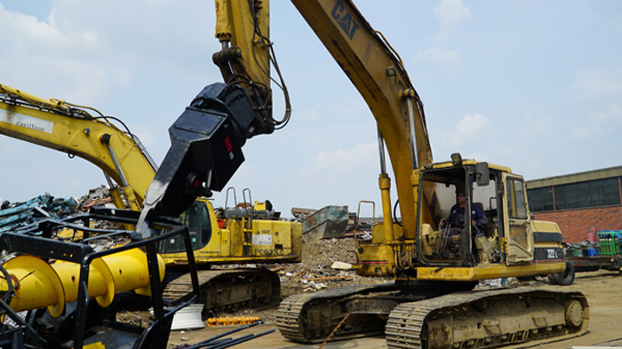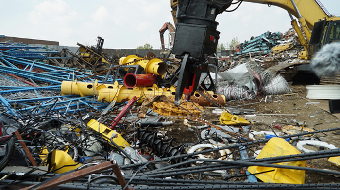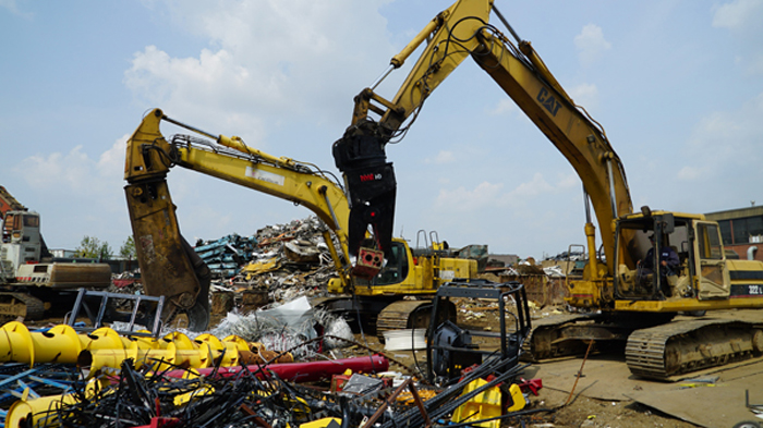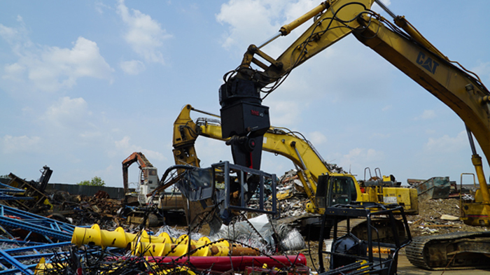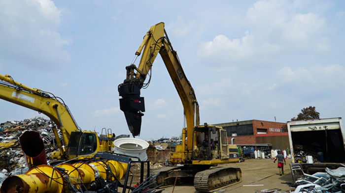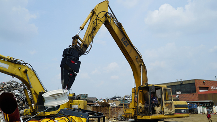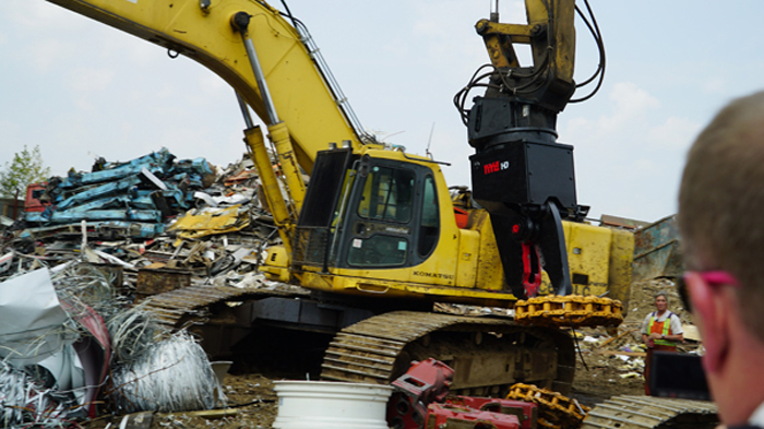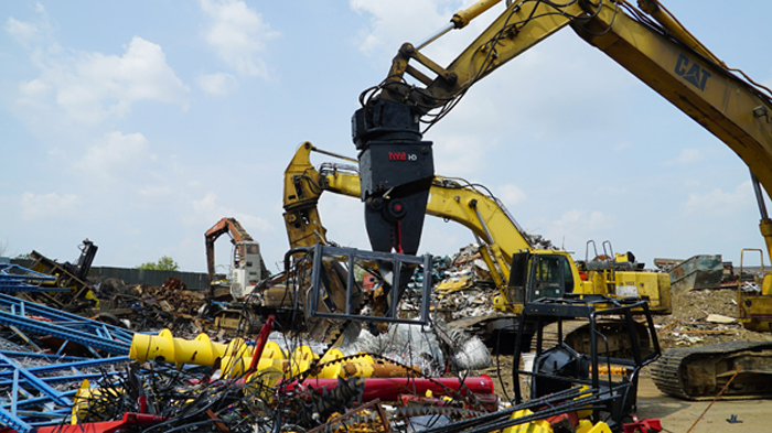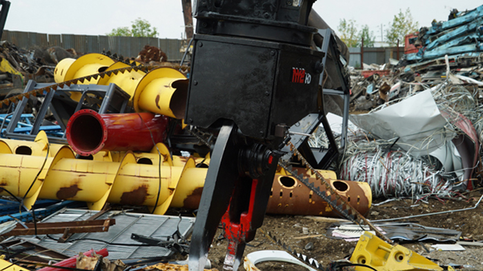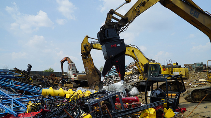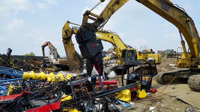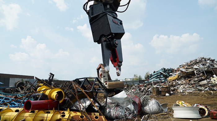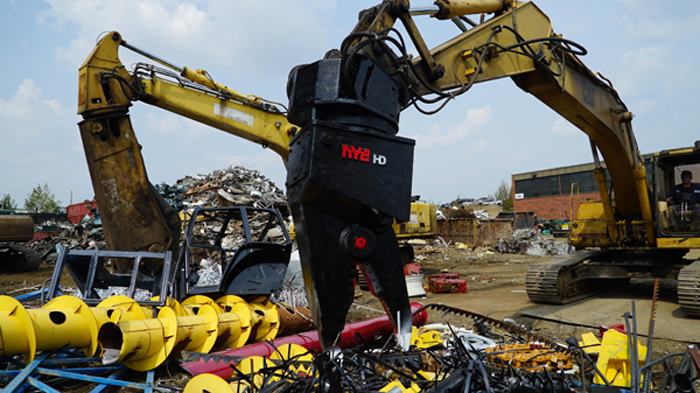 The Nye EXT is a heavy-duty stripping and sorting tool with continuous rotation and integral shear blade. The hydraulic rotator allows the operator to grip, flip, snip, rotate and pull a car to pieces in just a few minutes. The QT100 frame is super strong, and the replaceable tips mesh point to point for excellent fine picking and sorting.