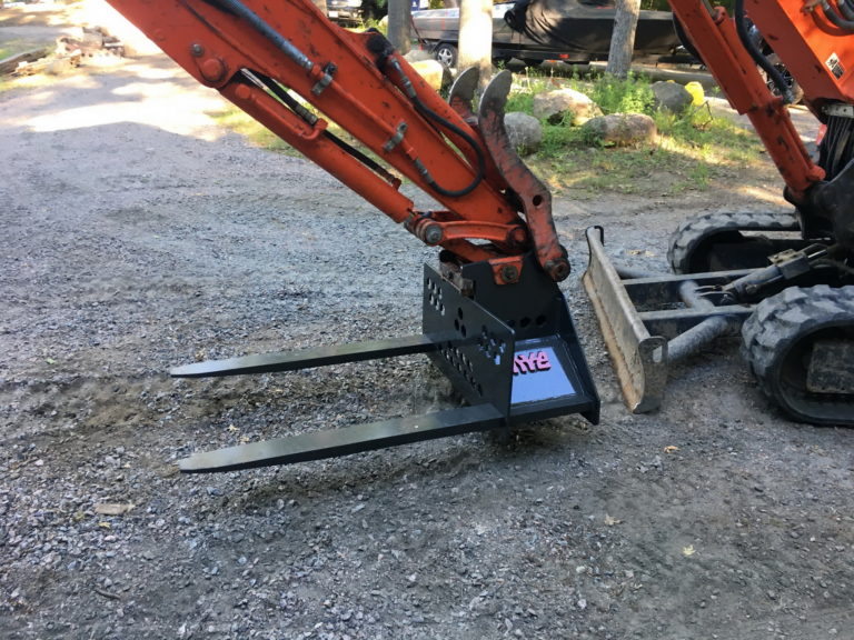 Nye EXF Excavator Forks feature a simple and cost effective design that quickly enables an excavator to lift palletised materials. The solid fabricated box section forms a super strong structure that sits flat on the ground when unattached. The honey comb perforated plate lightens the fork assembly and allows for extra visibility of the load.