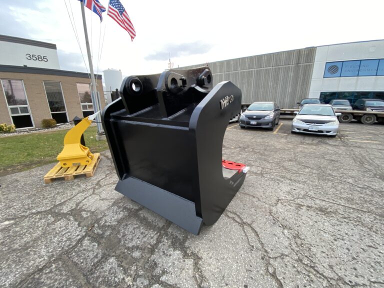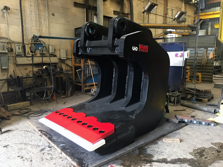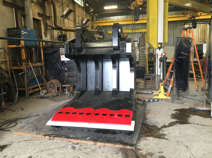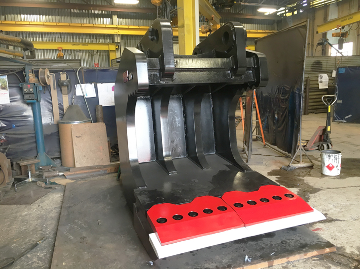 The bucket body is made with extra thick solid steel plate. The LSB850 has 100mm [4”] thick sides, top plate, basket and eyes plus 180mm [7”] thick laminated AR400 bottom. This extreme mass makes pounding seams and splitting rock easy.
