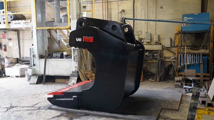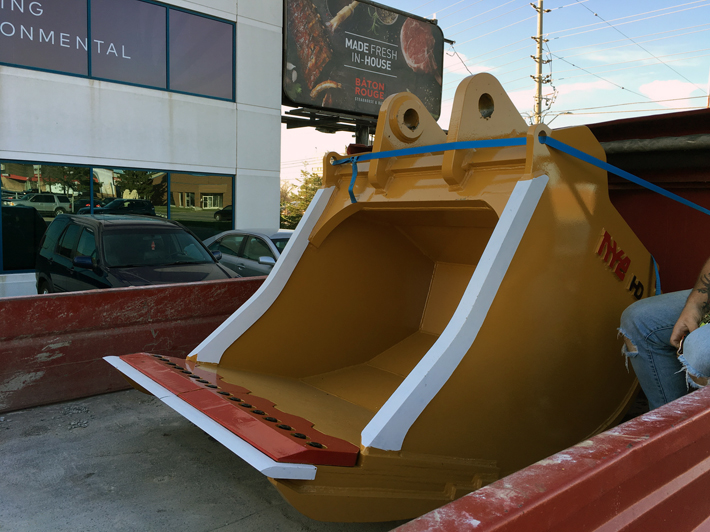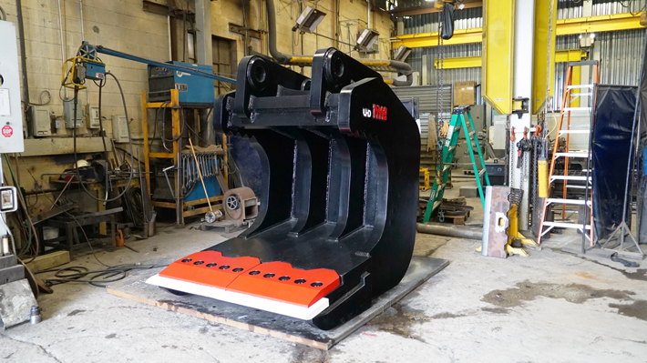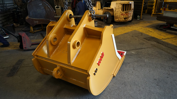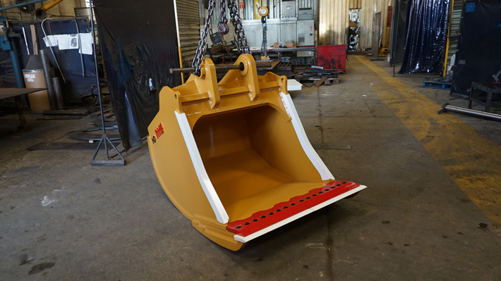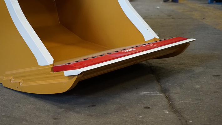 - Solid steel bucket construction, laminated design, QT and AR steel.