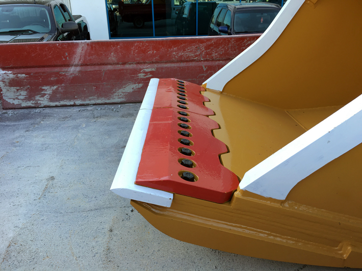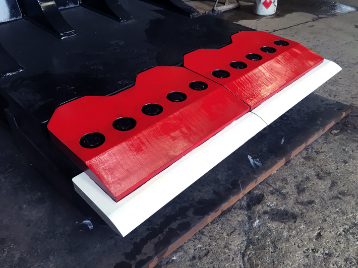 Nye’s new clamp in cutting edge system solves the dull-edge problem. The edges can be flipped or changed on site quickly by one man with a socket wrench, no welding or special tools required. The blade is in two pieces, so you can flip the blades and get four corners to wear instead of two giving twice the blade life and twice the production.