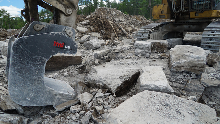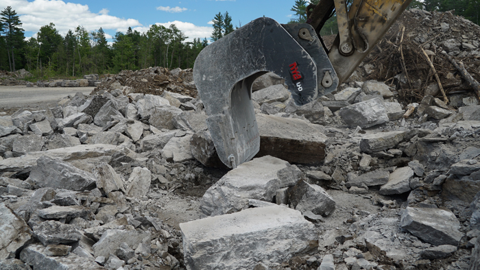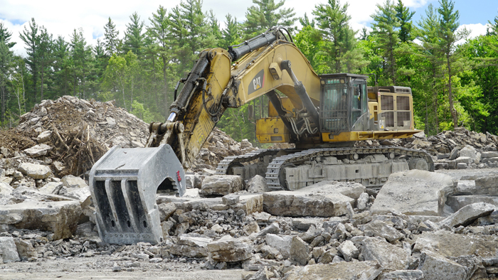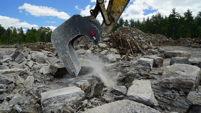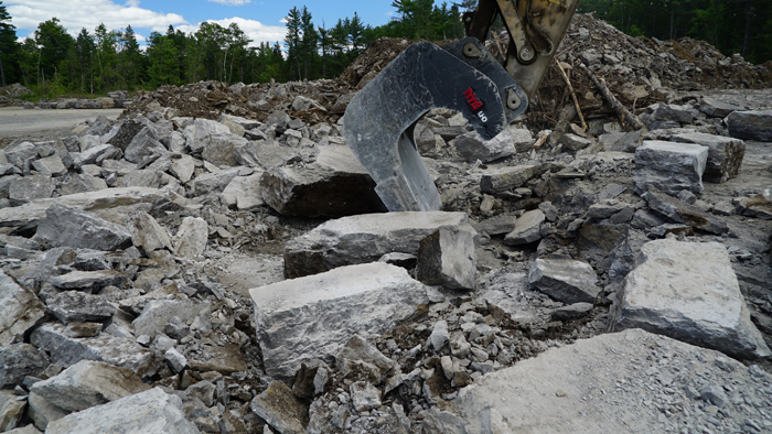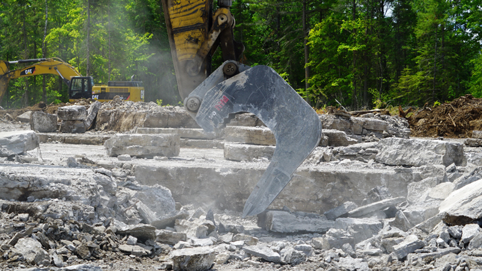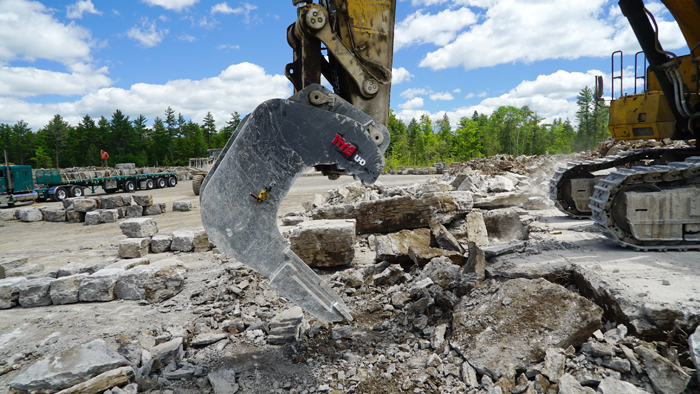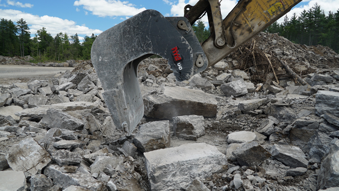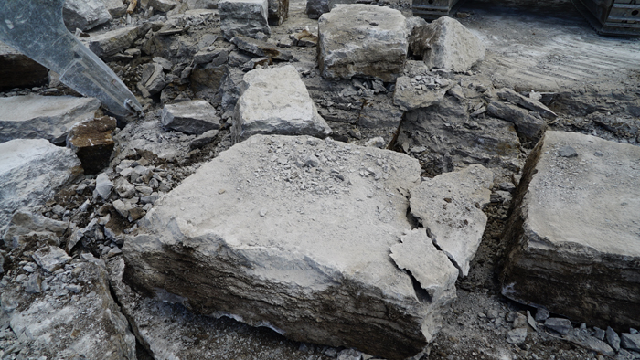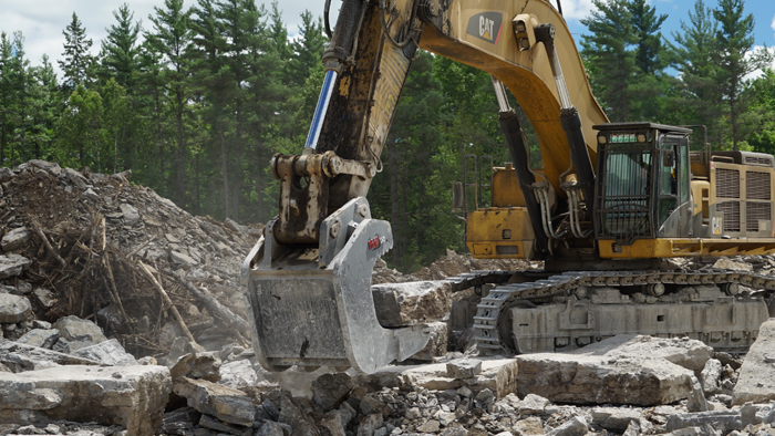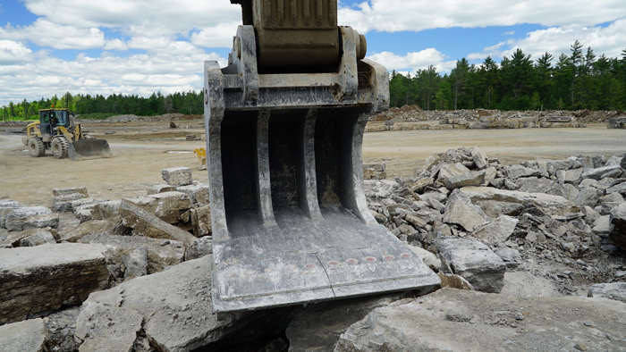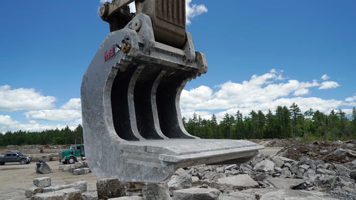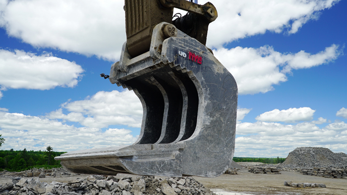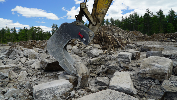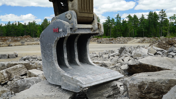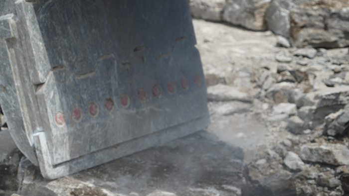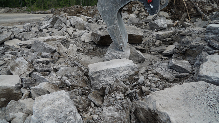 With a heavy bucket and sharp edge the operator can separate layers of rock easily by pounding the cutting edge into seams and cracks. The mass of the bucket does the work, not the excavator, like a man using a sledge hammer delivering powerful blows with no injury to himself.