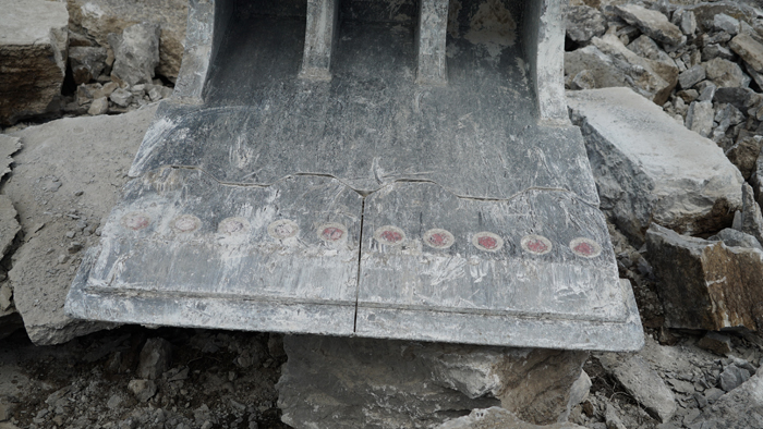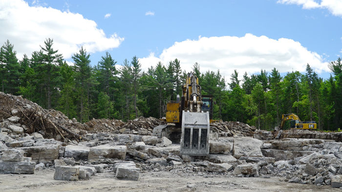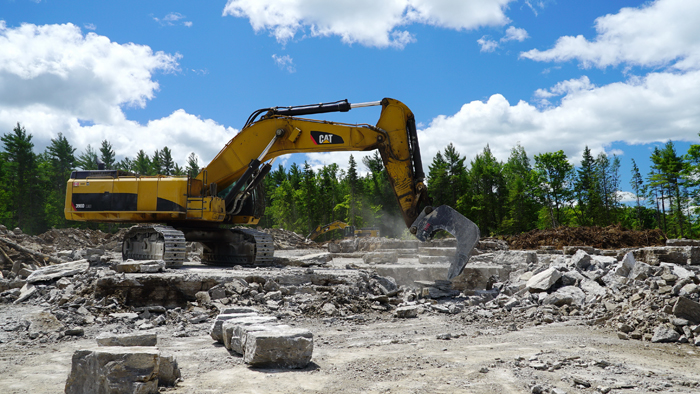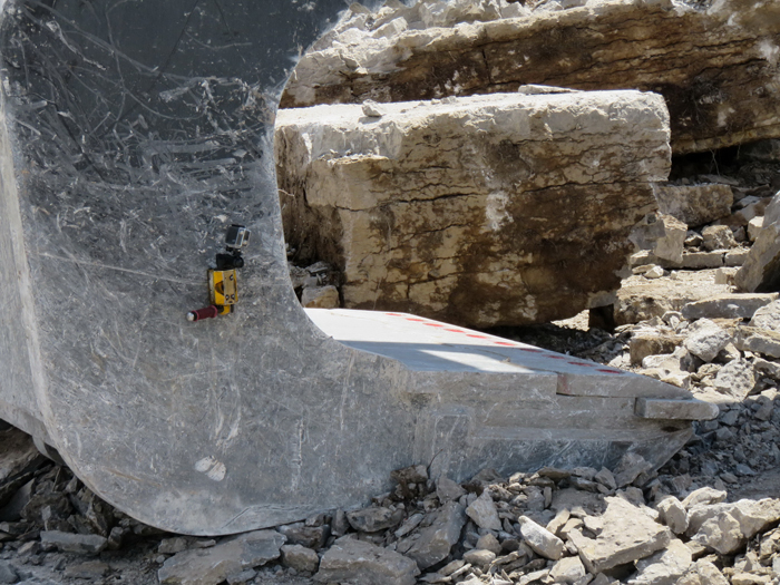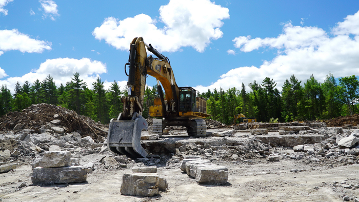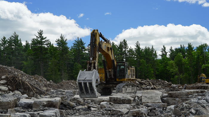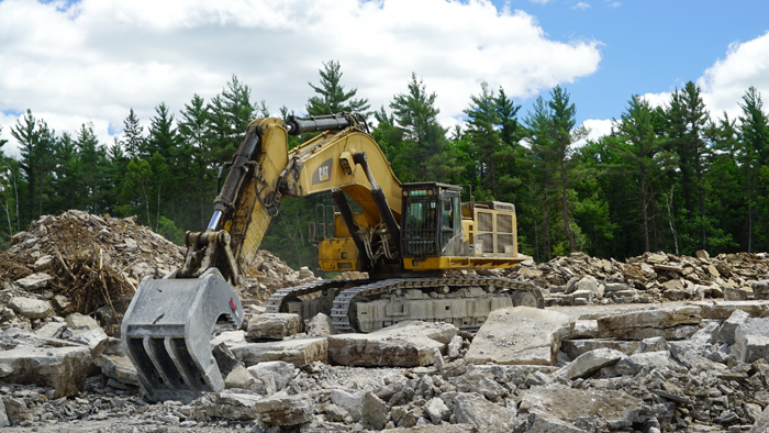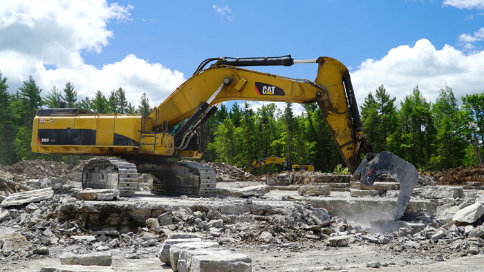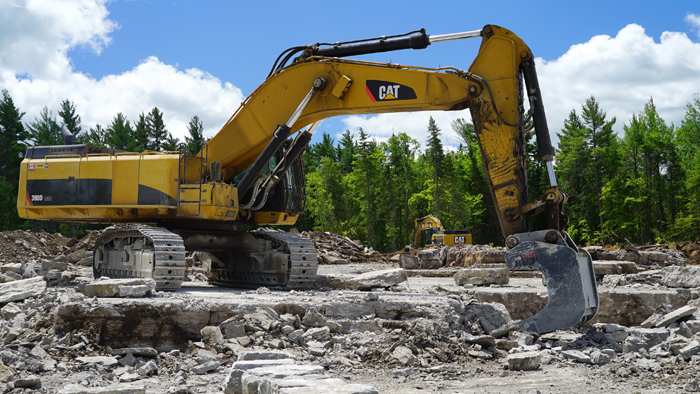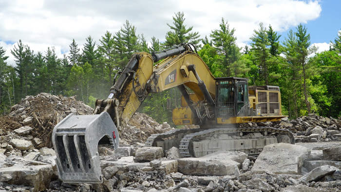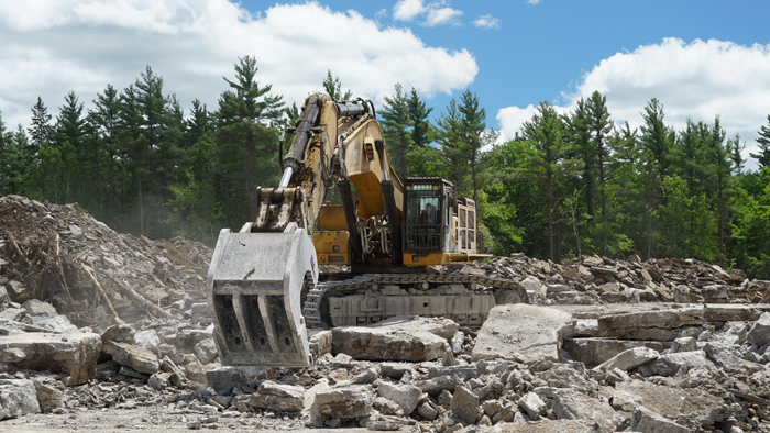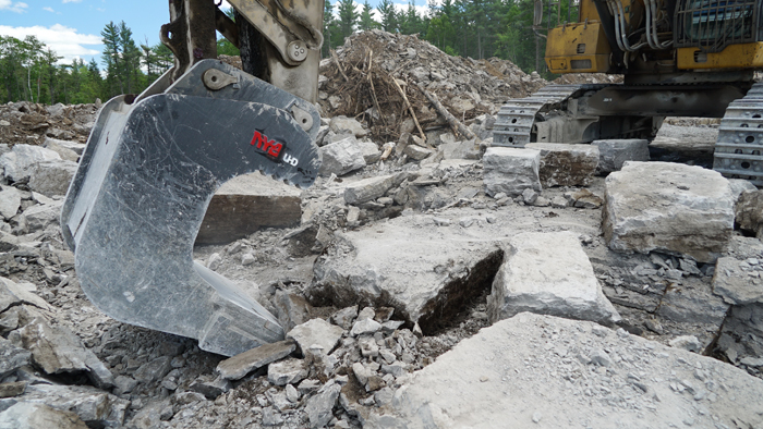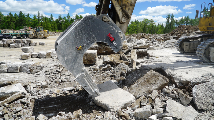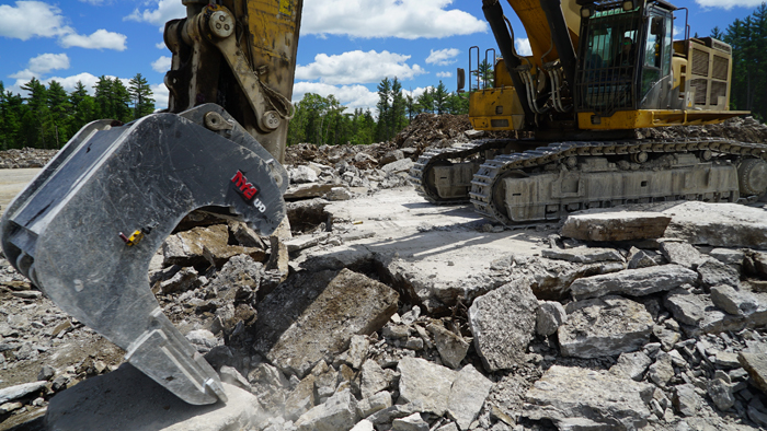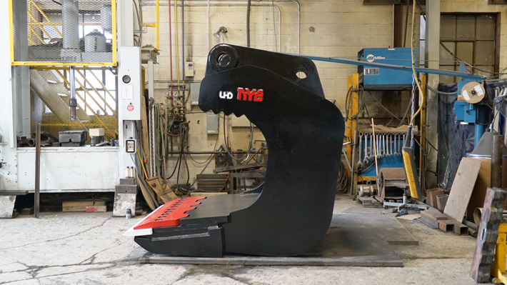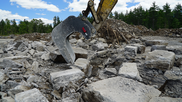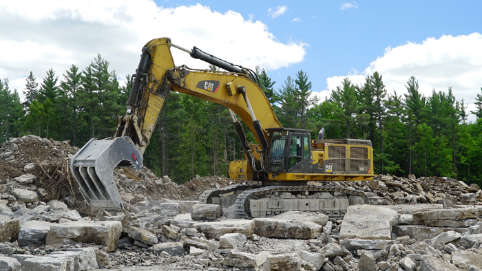 With a heavy bucket and sharp edge the operator can separate layers of rock easily by pounding the cutting edge into seams and cracks. The mass of the bucket does the work, not the excavator, like a man using a sledge hammer delivering powerful blows with no injury to himself.
