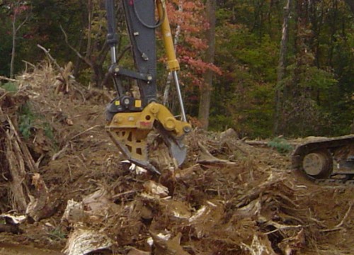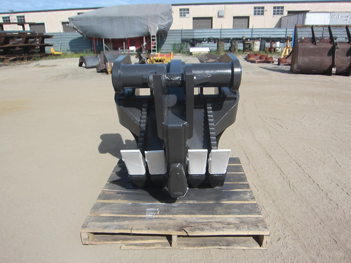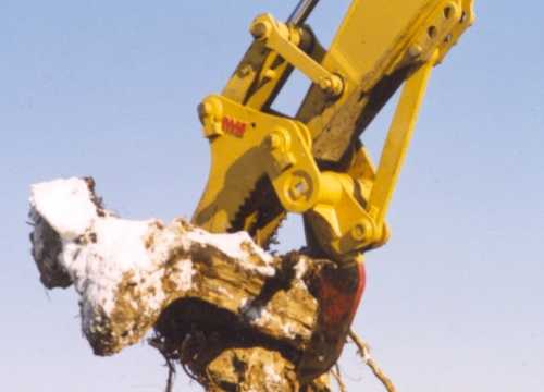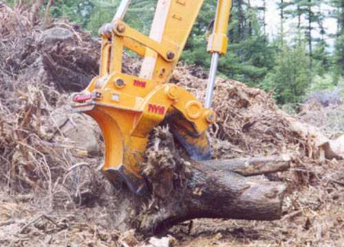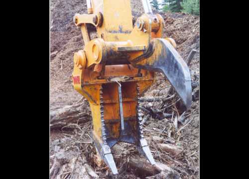 Wide grubbing tines – the wide body five tooth design of this harvester makes quick work of extracting stubborn stumps, roots and rocks. The flat side plates allow side sweeping and the serrated front contour is excellent for bailing large wads of stumpage.