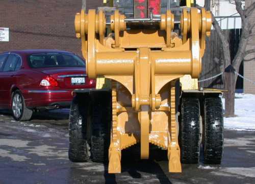 - Heavy duty hydraulic brace articulates cutting blade and fang for maximum versatility.