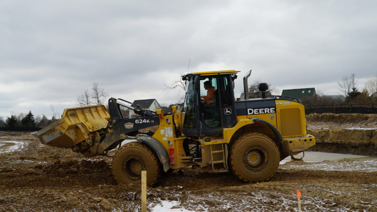 The single high-pressure cylinder with casing guard allows for optimum bucket positioning and controlled dumping under all working conditions.