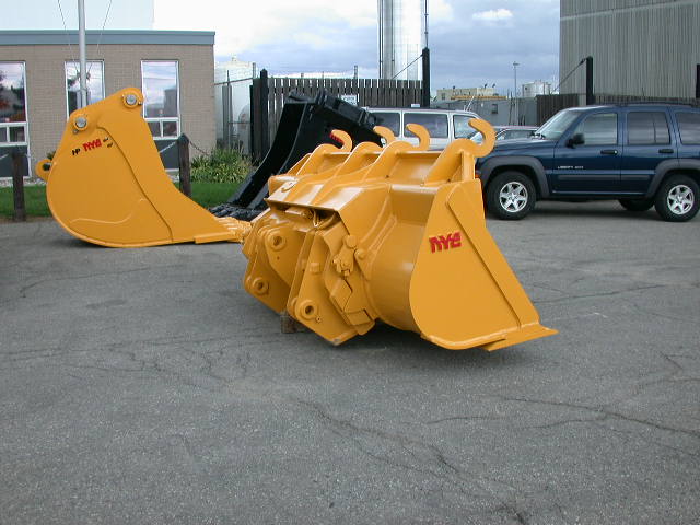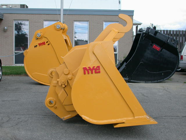 Nye SDB Side Dump Bucket double as a conventional or lateral dumping bucket and is designed to outperform in hard to maneuver work sites. The main boxed frame is built to last with QT100 quenched and tempered steel plate and AR500 in critical wear areas. Heavy torque plates and heavy walled bushings tie the pivot together and prevent twisting and racking of the structure. Oversize pivot pins and bushings ensure durability and long life.