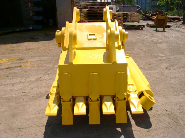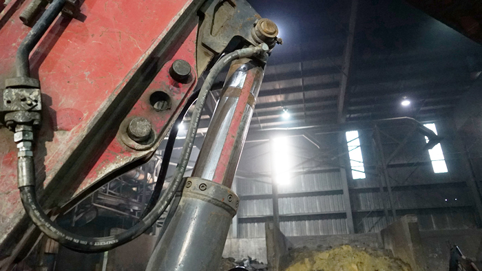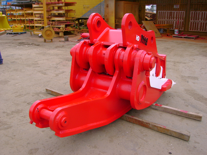The hydraulic brace gives operators the choice to articulate the lower jaw, allowing the pulverizer to be positioned in numerous configurations. The rod on the hydraulic brace is protected from falling debris by a sliding rod guard that was developed specifically for this application.