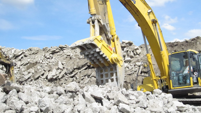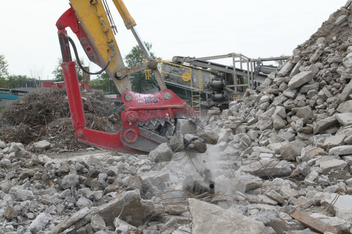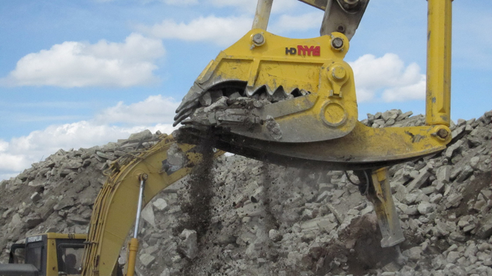 The Nye “T-Rex Pulverizer” is a new type of secondary concrete processor. It was engineered by using an approach to design called “Biomimetics“.