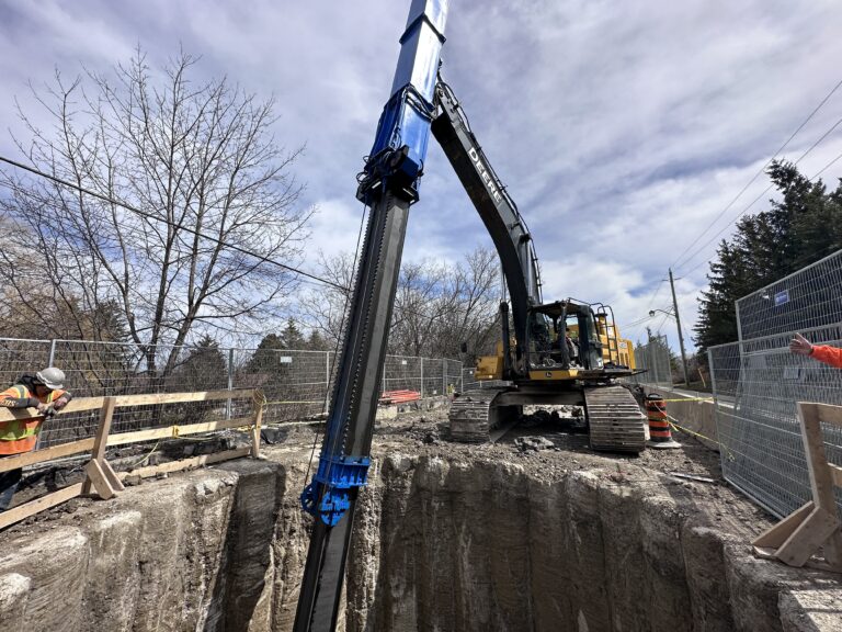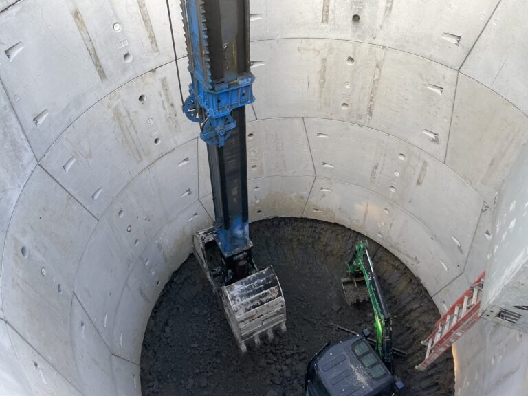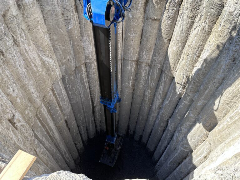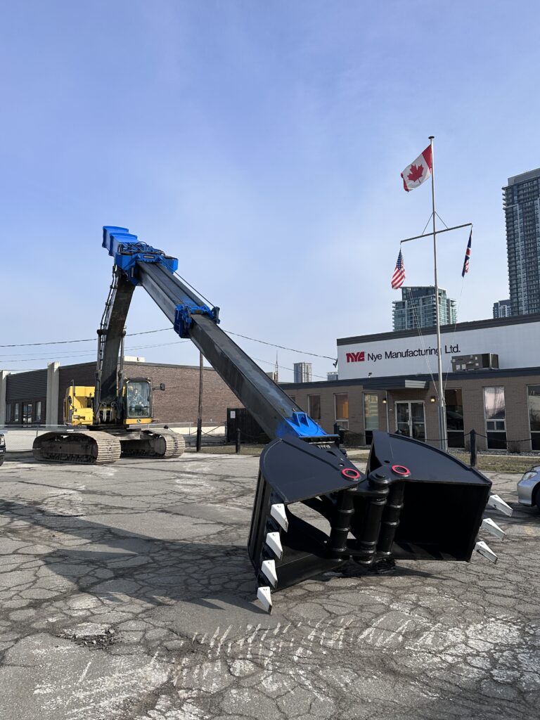 The Nye TDX is the ultimate high performance solution for deep excavation. Pins-on as a second member in place of a standard arm. The mounting bracket is replaceable for use with different machines of the same class. Built with premium quality QT100 structural plate throughout. The proven rack and pinion design with dual hydraulic planetary drive motors provides fast extend and retract function with unmatched durability. Replaceable aluminum-bronze wear blocks ensure smooth operation. Interface plate allows mounting of your choice of dangling, positioned, or rotating hydraulic attachments. Lights and camera with cab mounted display allows the operator to have a full view of down hole operations. Wide range of custom attachment options for hammering, mucking, and hard excavating. The Nye TDX is designed and built in Canada.