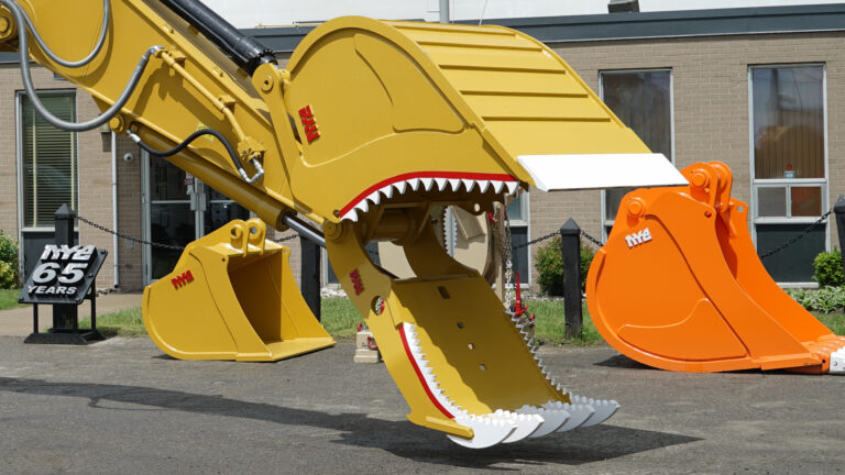 All Nye pin-on thumbs come with a case-hardened alloy main pin, heavy-duty hydraulic cylinder, and mounting bracket (optional high pressure cylinder available). Nye also builds progressive link, integral, and special purpose thumbs.
