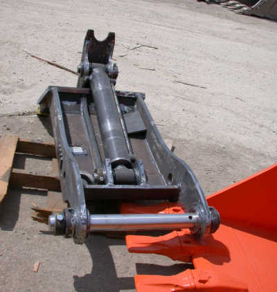 Pivots on the bucket or coupler pin. Only the cylinder bracket welds to the arm.