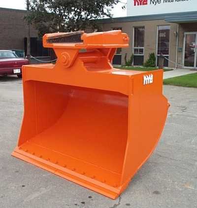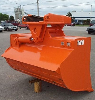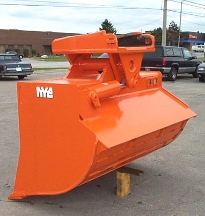 Nye Tilting Ditch Buckets have been continually improving over the last four decades. Our latest designs now feature a super strong one-piece QT100 front beam and twin double-acting hydraulic cylinders mounted low on the back where they belong, not on top or inside a compartment. Most models feature bolt-on edges and an onboard hydraulic control valve that provides load holding / relieving, speed control, and hose management functions.